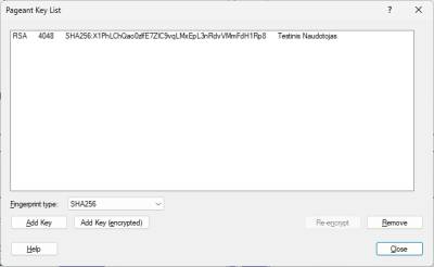 - Dabar galite naudotis daugumą programėlių (putty, pscp, pdftp, winscp, …) su ssh rakto autentifikacija be atskiro ssh rakto pateikimo.