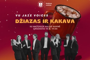 Artėjančias žiemos šventes pasitikite kartu su Vilniaus universiteto Kultūros centro kolektyvu „VU Jazz Voices“, kuris gruodžio 15 d. 19 val. VU Mažosios aulos kavinėje padovanos jaukų, kalėdine magija ir karšta kakava alsuojantį muzikinį vakarą.